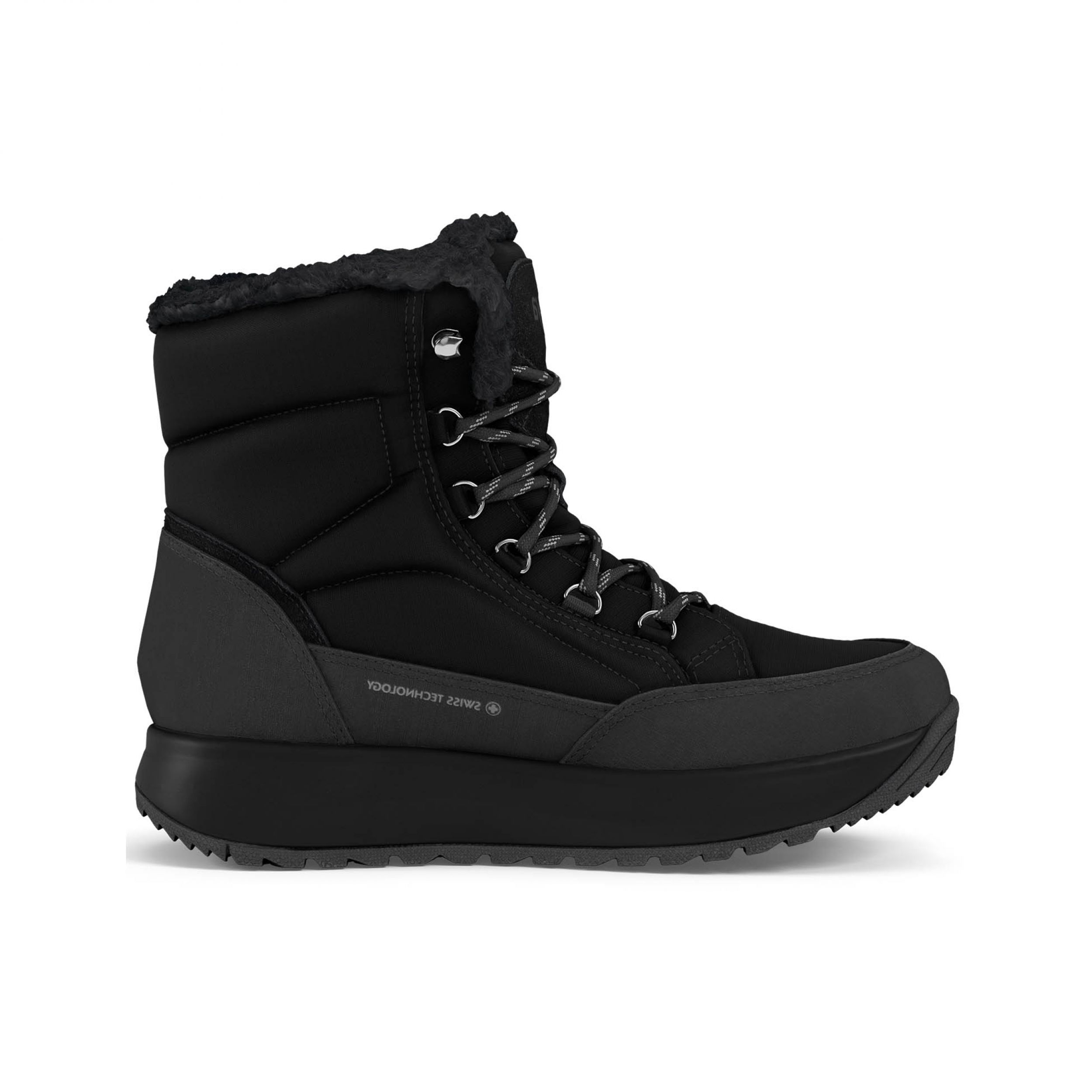 Ripstop nylon laarzen met snelvetersysteem en synthetische bontvoering. Voorzien van een ademend Sympatex-membraan met waterafstotende constructie om je voeten warm en droog te houden, en een rubberen profielzool voor extra grip. Uitgerust met de Joya Senso-zooltechnologie die zorgt voor een uitstekende schokdemping en een evenwichtige drukverdeling, en daarmee optimaal comfort en verlichting biedt voor rugspieren, gewrichten en de dagelijkse belasting van de voeten.