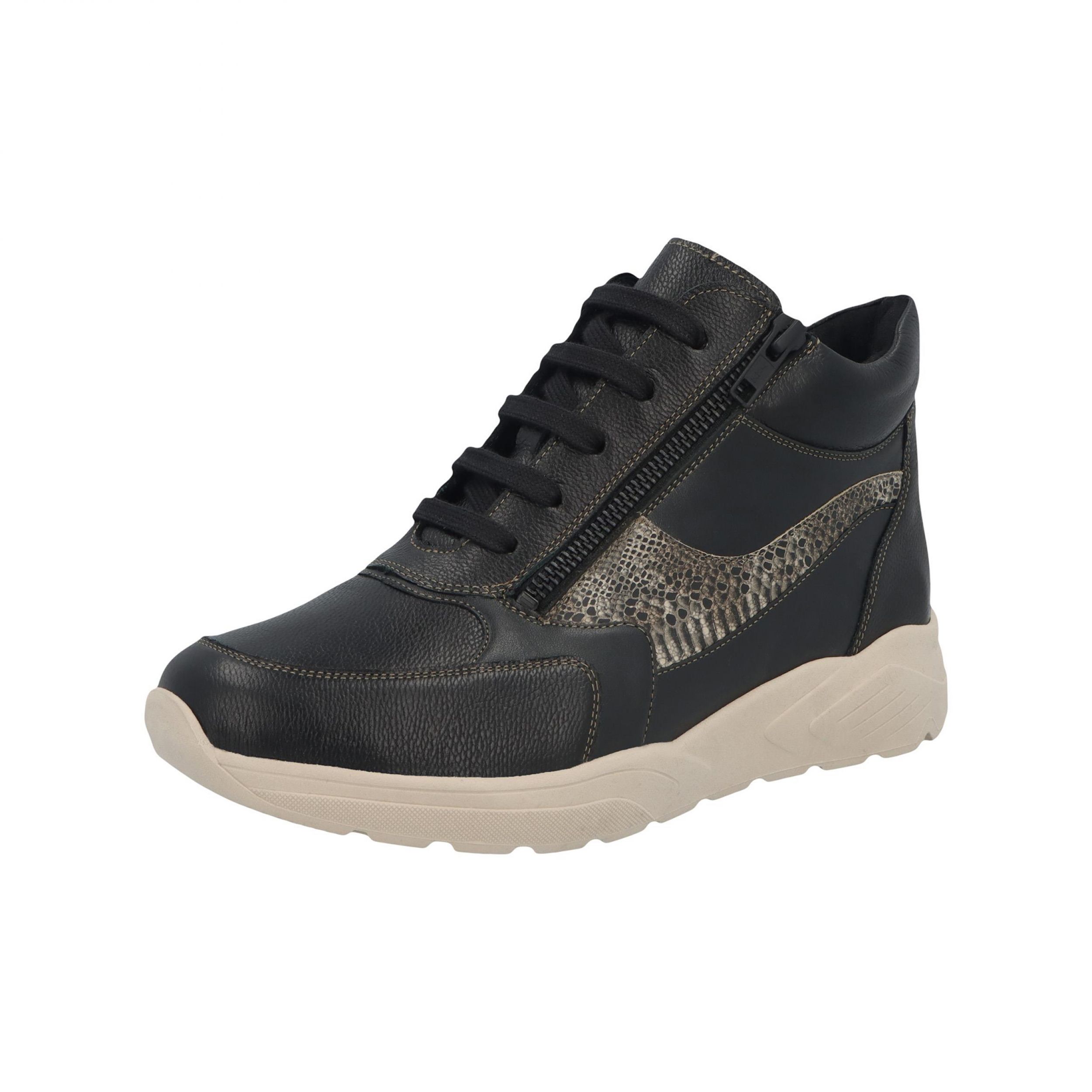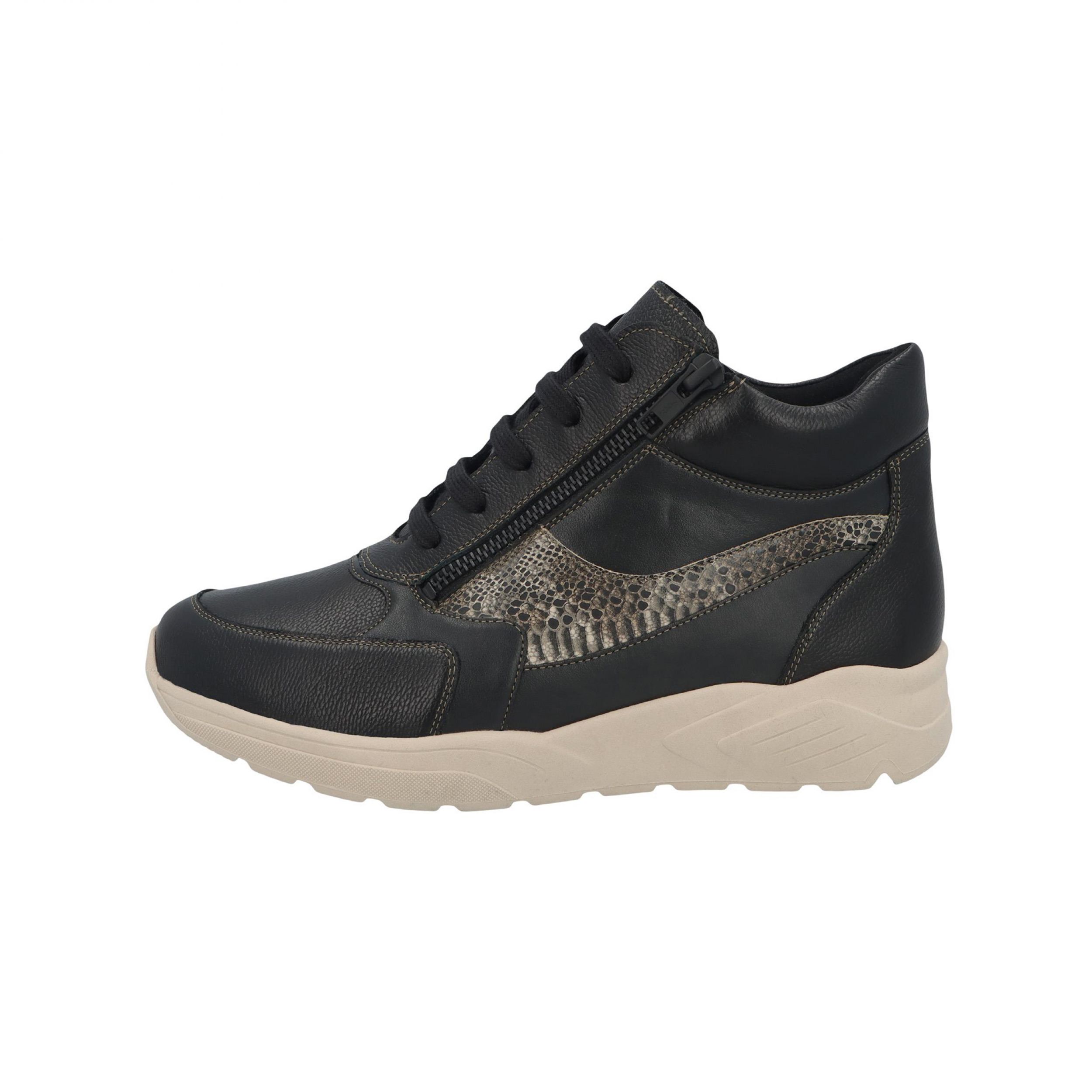 | Referentie | Hoge Basket+Rits Mia M Leder Zwart+Slangenprint |
