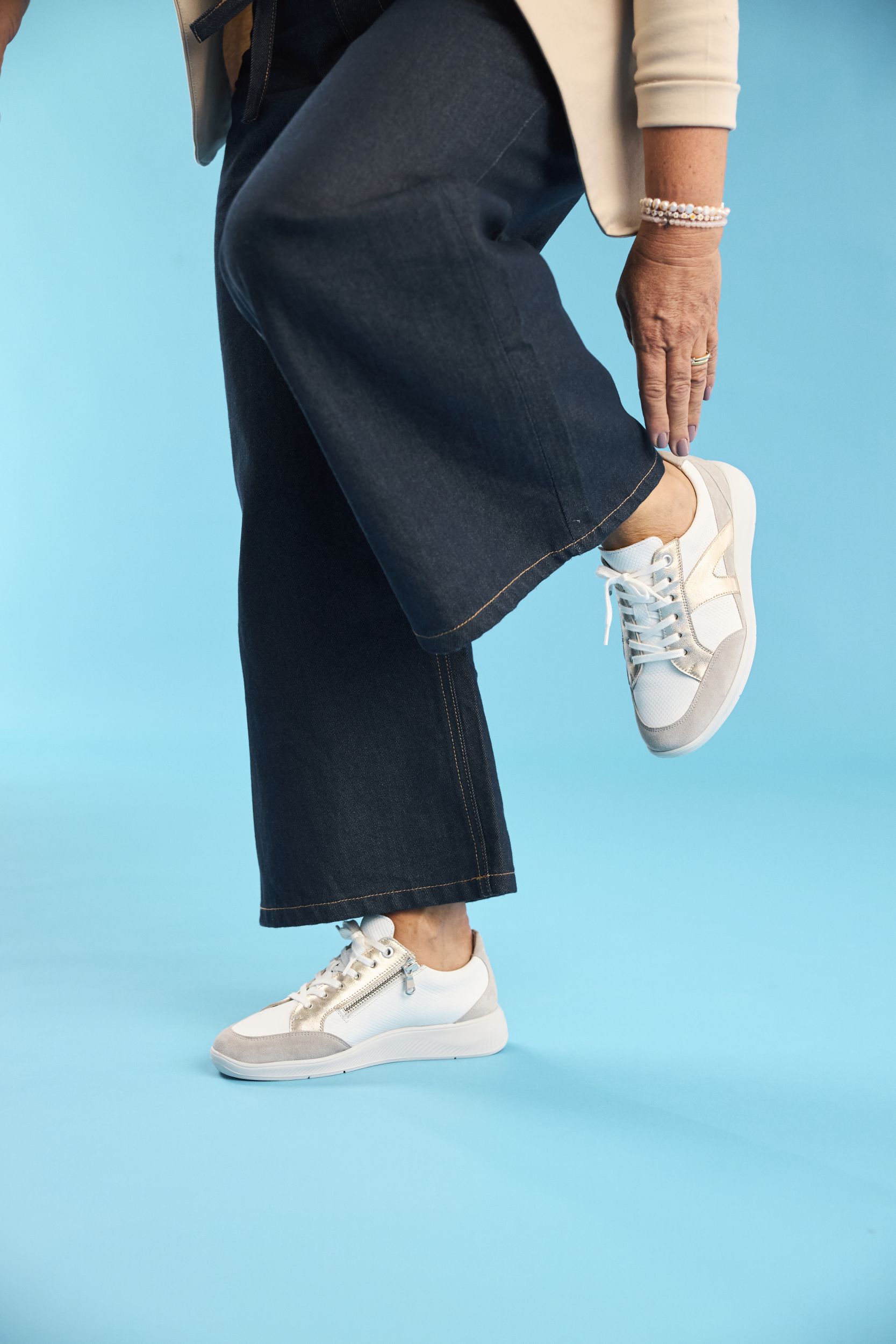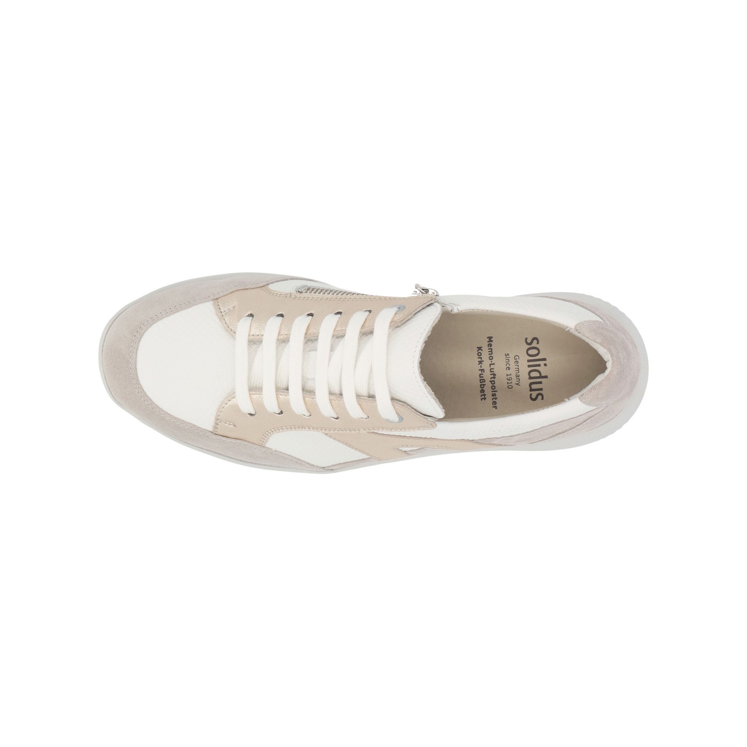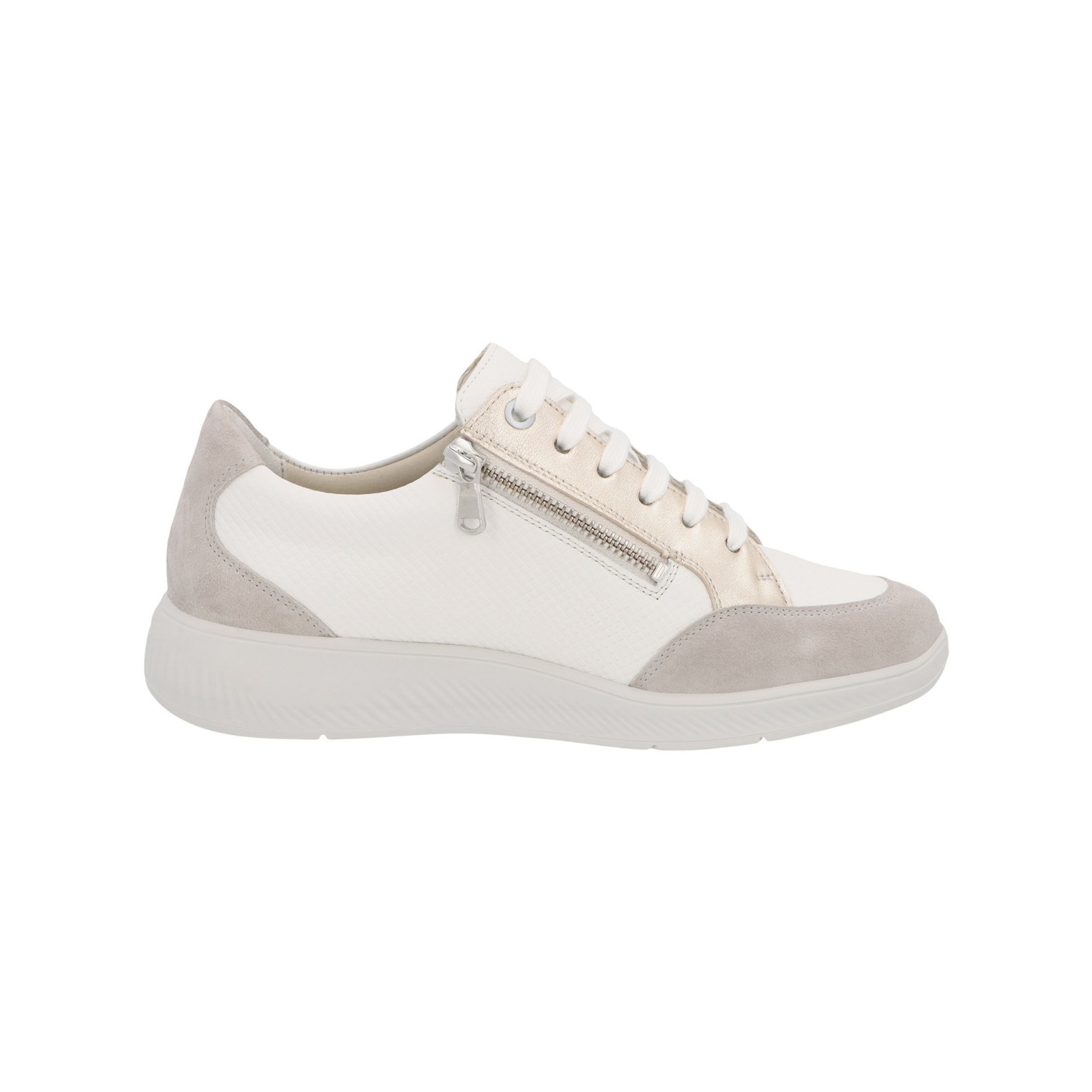 | Referentie | Sneaker+Rits Kalea K Leder+Suède Wit/Goud/Grijs |