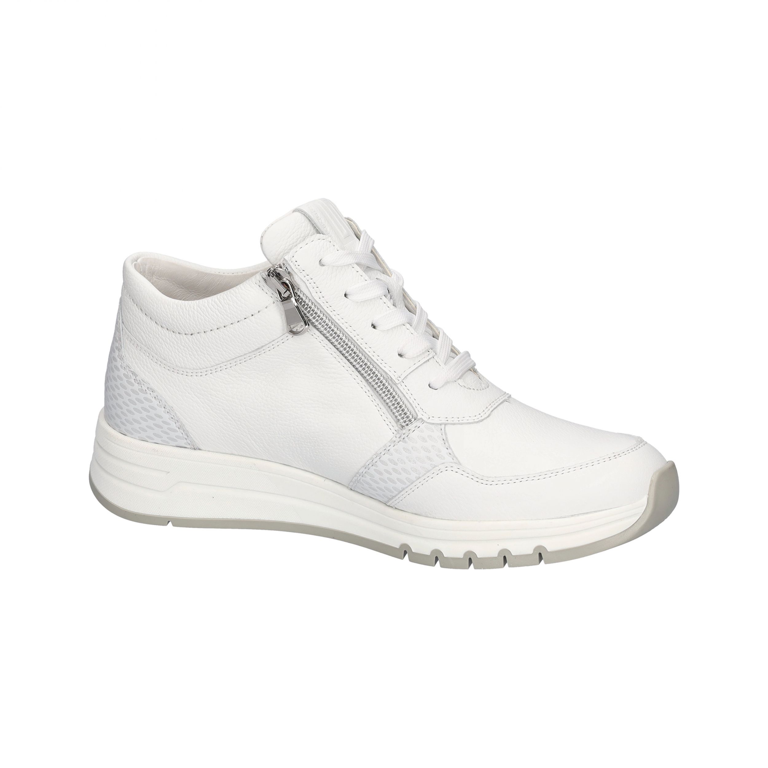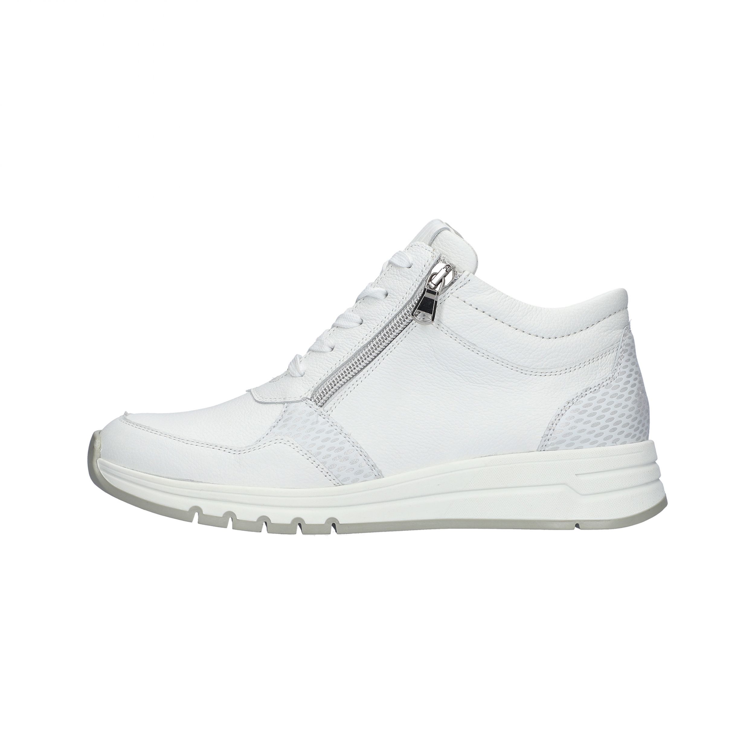 | Referentie | Hoge Sneaker/Basket Met Dubbele Rits April H Wit+Zilver |